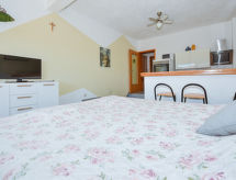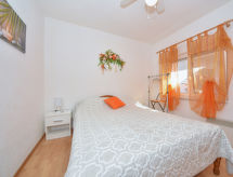 2 rom leilighet 39 m2, på bakkeplan, beliggenhet mot sør-vest. Stue/soverom 20 m2 med, 1 dobbeltseng (140 cm, lengde 200 cm), spisebord, satelit-TV og air-conditioning. Utgang til terrassen. 1 rom med, 1 dobbeltseng (140 cm, lengde 200 cm). Åpent kjøkken (stekeovn, oppvaskmaskin, 4 keramiske kokeplater, mikrobølgeovn, frys). Dusj/WC. Terrasse 11 m2, dekt. Terrassemøbler, liggestoler. Fasiliteter: hårføner. Internett (trådløs LAN [WLAN], gratis). Max kjæledyr/små hunder tillatt 2 kjæledyr/små hunder tillatt.- fasiliteter
