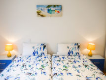 4 rom villa 97 m2. Lys, moderne møbler: stue/spisestue med, TV. Utgang til hagen, til verandraen. 2 rom, hvert rom med, 1 dobbeltseng (1 x 160 cm, lengde 190 cm). 1 rom med 2 senger (90 cm lengde 190 cm). Kjøkken (stekeovn, oppvaskmaskin, 4 keramiske kokeplater, frys). Bad, sep. WC. El-oppvarming. Hage 350 m2. Terrassemøbler. Fasiliteter: vaskemaskin. Internett (trådløs LAN [WLAN], gratis). Parkeringsplass (2 Biler). Vennligst merk: røykvarsler. Et badekar er tilgjengelig. Eiendommen er helt inngjerdet.- fasiliteter