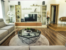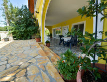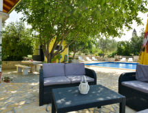 4 rom leilighet 140 m2, på bakkeplan, beliggenhet mot sør-vest. Stue/spisestue 70 m2 med, satelit-TV (flatskjerms TV), air-conditioning. Utgang til terrassen. 1 rom med, 1 dobbeltseng (180 cm, lengde 200 cm), bad/WC og TV (flatskjerms TV). 1 rom med, 1 x 2 køysenger (90 cm, lengde 200 cm), TV (flatskjerms TV). 1 rom med, 1 dobbeltseng (180 cm, lengde 200 cm), TV (flatskjerms TV). Åpent kjøkken (4 kokeplater, ovn, oppvaskmaskin, mikrobølgeovn, frys, elektrisk kaffemaskin). Sep. WC, bad/dusj/bidé/WC, boblebad. Terrasse 40 m2, dekt. Terrassemøbler, liggestoler (6). Utsikt av svømmebassenget og landskapet. Fasiliteter: vaskemaskin, hårføner. Internett (trådløs LAN [WLAN], gratis). Et badekar er tilgjengelig. Eiendommen er helt inngjerdet. Med sin egen boblebad., Dra nytte av boblebadet. Klimaanlegget sørger for god romtemperatur. Fordi den følelsesvennlige faktoren spiller en viktig rolle og er viktig for oss. Huset er også utstyrt med en terrasse. Det er et privat basseng.- fasiliteter