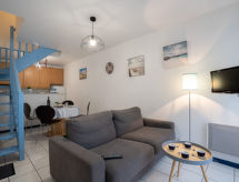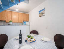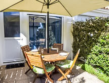 2 rom leilighet 38 m2 på 2 etasjer, på bakkeplan. Komfortabelt og vakkert møbler: stue/spisestue med, 1 dobbel sovesoffa (1 x 140 cm, lengde 190 cm), TV (flatskjerms TV). Utgang til terrassen. Åpent kjøkken (ovn, 4 keramiske kokeplater, mikrobølgeovn, frys, elektrisk kaffemaskin). Utgang til terrassen. øverste etasje: 1 rom med, 1 dobbeltseng (1 x 140 cm, lengde 190 cm). Dusj/WC. El-oppvarming. Terrasse 9 m2, østvendt beliggenhet, liten sitteplass i hagen 15 m2. Terrassemøbler, liggestoler (1). Utsikt av hagen. Fasiliteter: vaskemaskin, strykejern, hårføner. Internett (trådløs LAN [WLAN], gratis). Parkeringsplass. Vennligst merk: max kjæledyr / hund tillatt 1 kjæledyr / hund tillatt. Røykvarsler. 64125000112F0 Husdyr er tillatt. La hunden ta en sniff på de beste dagene av året.- Kjennetegn ved boligen