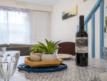 Bidart 9 km fra Saint Jean de Luz: Residens "Villa Morena". 300 m fra sentrum av Bidart, 900 m fra sjøen, 900 m fra stranden, ved en hovedvei. Kjøpesenter 2 km, restaurant, bar, bakeri, café 300 m.minutters gange til sentrum 10, bussholdeplass 300 m, togstasjon "Biarritz" 7 km, sandstrand "Erretegia" 900 m, termalbad "Hélianthal" 9 km. Golfbane(9 hull) 3.5 km, surfeskole 900 m. Attraksjoner i nærheten: Bidaparc 600 m, Bus A1 depuis la gare SNCF de Biarritz. Turstier La Rhune 15 km. Nøkkelleveringen skjer i Interhome i Bidart.Interior