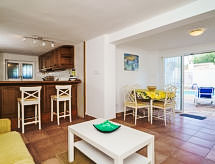"Villa Paradise", 3 rom hus 65 m2, på bakkeplan. Fullstendig renovert, meget vakkert og koseligt møbler: stue/spisestue med, satelit-TV, flatskjerms TV og air-conditioning. Utgang til hagen, til terrassen, til badebassenget. 1 rom med 2 senger, air-conditioning og vifte. 1 rom med, 1 dobbeltseng, bad/dusj/WC, air-conditioning og vifte. Åpent kjøkken (stekeovn, oppvaskmaskin, mikrobølgeovn, frys, elektrisk kaffemaskin). Dusj/WC. Oppvarmingsalternativ. Stor sitteplass i hagen delvis dekt. Terrassemøbler, grill, liggestoler. Fasiliteter: vaskemaskin, safe. Internett (trådløs LAN [WLAN], gratis). Parkeringsplass. Vennligst merk: velegnet for familier. Røykfritt hus. Bare TV EN. AT-451771-A Med inngjerdet tomt. Huset er også utstyrt med veranda. Et privat basseng er tilgjengelig. Finn ut om det eksisterende TV-apparatet. Om lokale nyheter eller internasjonale nyheter, med fjernsynet er du alltid godt informert.- Kjennetegn ved boligen