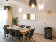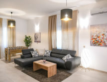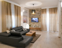 Pobri: Dobbelthus "Villa Stella", med 3 etasjer, bygget i 2018. Ovenfor Opatija 2.5 km fra sentrum av Opatija, i en roligt, solrikt posisjon, 2.5 km fra sjøen, 2.5 km fra stranden, i en blindvei. Fellesbruk: tomt 1'200 m2, plen 200 m2. Lekeplass (rutsjebane, huske). Privat: svømmebasseng kantete, oppvarmt (7 x 4 m, dybde 150 cm, Sesongåpent: 01.Mai. - 15.Okt.). Utendørs dusj, terrasse (100 m2). I hbrukt: internetilkobbling, bordtennis, fotballsbord, vaskemaskin. Parkering (for 4 biler) ved hbrukt på tomten. Butikk 150 m, restaurant 2.5 km, småstenstrand 2.5 km, offentlig badeområde 2.5 km, betonglagt strand 2.5 km. Grupper med tenåringer- bare ved forespørsel. Vennligst merk: objektnummer HR3105.126 ligger på samme tomt. Det er ikke tillatt å organisere en fest. Videoovervåkning av eiendommen.Interior