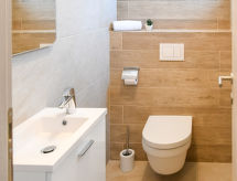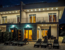 6 rom halvpart av tomannsbolig 160 m2 på 3 etasjer, beliggenhet mot sør. Moderne og koseligt møbler: stue/spisestue 60 m2 med, TV (flatskjerms TV), air-conditioning. Utgang til terrassen, til badebassenget. Åpent kjøkken (ovn, oppvaskmaskin, 4 keramiske kokeplater, mikrobølgeovn, frys, elektrisk kaffemaskin). Sep. WC. øverste etasje: 1 rom med 2 senger (80 cm lengde 200 cm), TV (flatskjerms TV), air-conditioning. 1 rom med, 1 dobbeltseng (160 cm, lengde 200 cm), TV (flatskjerms TV), air-conditioning. Utgang til terrassen. 1 rom med, 1 dobbeltseng (160 cm, lengde 200 cm), dusj/bidèt/WC og TV (flatskjerms TV), air-conditioning. Utgang til terrassen. Dusj/WC. øverste etasje: 1 rom med, 1 dobbeltseng (160 cm, lengde 200 cm), dusj og TV (flatskjerms TV), air-conditioning. Utgang til terrassen. 1 rom med 1 seng (90 cm lengde 200 cm), vaskeservant og dusj. Utgang til terrassen. Sep. WC. Gulvvarme, varmluftsoppvarming. Balkong 5 m2, 2 terrasser 18 m2, dekt, terrasse 65 m2. Terrassemøbler, grill (flyttbar), liggestoler. Vakker utsikt av havet. Fasiliteter: safe, hårføner. Internett (trådløs LAN [WLAN], gratis). Utsikt over havet og beliggenheten er nydelig. På lekeplassen kan barna la av damp. Selv om det forblir så varmt om natten, er det fint, du kan skru på klimaanlegget og sove i et hyggelig, temperert inneklima. En oppvaskmaskin er tilgjengelig. Den har en parkeringsplass. Den har et basseng. Det har et privat basseng. Et oppvarmet basseng er tilgjengelig. Den har et bordtennisbord.- fasiliteter