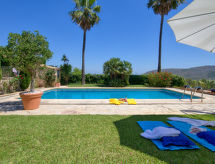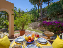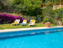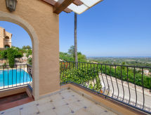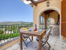 "Villa Sunrise", 3 rom hus 124 m2. Romlig, komfortabelt og vakkert møbler: stue/spisestue med, digital TV. Utgang til terrassen. 1 rom med, 1 dobbeltseng (150 cm, lengde 190 cm). 1 rom med 1 seng (90 cm lengde 180 cm), 1 dobbeltseng (135 cm, lengde 190 cm), bad/bidèt/WC. Stort kjøkken (stekeovn, oppvaskmaskin, 4 keramiske kokeplater, mikrobølgeovn, frys, elektrisk kaffemaskin). Dusj/WC. Varmekabler i gulvet. Terrasse, lysthus. Terrassemøbler, grill. Meget vakker panoramautsikt av havet, fjellene og dalen. Fasiliteter: vaskemaskin, strykejern, myggnett, høy barnestol barneseng, hårføner. Internett (trådløs LAN [WLAN], gratis). Parkeringsplass, garasje. Vennligst merk: velegnet for familier. Bare TV ES. R000000001 Med inngjerdet tomt. Dessuten er de bortskjemt med en klar utsikt over havet. En veranda er tilgjengelig. Den har en baby seng. Det er et privat basseng.- Aktiviteter i nærheten