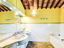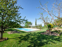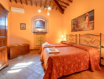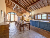 Stor, familievennlig, fin villa, omgitt av enger. 7 km fra sentrum av San Gimignano, 52 km fra sentrum av Siena, 58 km fra sentrum av Firenze, i en roligt, solrikt posisjon. Privat: stor, velholdt hage m2 1'800 ha (inngjerdet) med, eng, svømmebasseng inngjerdet (7 x 14 m, dybde 120- 240 cm dyp, Sesongåpent: 29.Apr. - 30.Sep.). Utendørs dusj, bassenghus, bordtennis. I hbrukt: sentralvarme, vaskeri, vaskemaskin, tørketrommel, oppvarming kun tilgjengelig fra 01.11. til 15.04.. Romrengjøring på forespørsel (ekstra). Stuepike på forespørsel (ekstra). Kokk på forespørsel (ekstra). Tilgang med bil hele veien til hbrukt (800 m naturvei). Parkering (for 3 biler) ved hbrukt. Bar 2 km, togstasjon "Certaldo" 6 km. Golfbane(18 hull) 26 km, tennis 5 km, turstier fra hbrukt 100 m. Attraksjoner i nærheten: Certaldo 6 km, Colle di Val d'Elsa 21 km, Monteriggioni 25 km, Volterra 30 km, San Donato 33 km, Castellina in Chianti 45 km. Vennligst merk: velegnet for barnefamilier, babyutstyr på forespørsel (ekstra). Plikt til å bruke badehatter. Golf i San Gimignano betyr sosialitet og fremfor alt morsomt. Din golfferie vil bli en uforglemmelig opplevelse når det gjelder sport, koselig og koselig.Interior