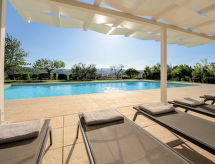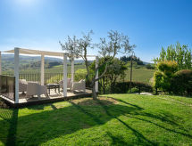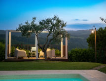 "Vineyard View", 6 rom villa 220 m2, på bakkeplan. Meget komfortabelt og vakkert møbler: stor inngang med, satelit-TV (flatskjerms TV), DVD. Utgang til hagen. 1 dobblet rom med, dusj/bidèt/WC og air-conditioning. 1 dobblet rom med, air-conditioning. 1 dobblet rom med, air-conditioning. 1 rom med 2 senger og air-conditioning. Åpen galleri med, 1 dobbel sovesoffa. Stort kjøkken/stue (6 kokeplater, stekeovn, oppvaskmaskin, brødrister, vannkoker, mikrobølgeovn, frys, elektrisk kaffemaskin, Internet(Nescafè 1 box) gratis, pizzaovn) med, spisebord. Bad/bidé/WC, dusj/bidé/WC. Naturstengulv. Behagelig møblering i landlig stil. Liten terrasse, sitteplass i hagen. Terrassemøbler, grill. Meget vakker panoramautsikt av landskapet. Fasiliteter: vaskemaskin, tørketrommel, strykejern, myggnett, høy barnestol barneseng. Internett (trådløs LAN [WLAN], gratis). Max kjæledyr/små hunder tillatt 2 kjæledyr/små hunder tillatt. Her hvor hunder er tillatt og velkomne gjester er fine. For den ultimate avslapning mens du er på ferie, er en kokk til din disposisjon. I hagen vår tilbyr du god plass til avslapning og rekreasjon. Selv om det forblir så varmt om natten, er det fint, du kan skru på klimaanlegget og sove i et hyggelig, temperert inneklima. En veranda er til stede. Det har et privat basseng. Det er en tørketrommel. Ved rengjøring. Den har en DVD-spiller. Et bordtennisbord er tilgjengelig.- Kjennetegn ved boligen