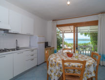 "Vista Mare 2", 3 rom leilighet 80 m2, på bakkeplan. Passer for 4 voksne + 2 barn. Enkelt møbler: stue/spisestue med, 1 dobbel sovesoffa (140 cm, lengde 190 cm), satelit-TV og air-conditioning. Utgang til terrassen. 2 dobbelt rom. Kjøkkenkrok (4 kokeplater, frys). 2 dusjer/bidéer/WC. Vannkoker (50 liter). Terrasse. Terrassemøbler. Utsikt av havet. Fasiliteter: vaskemaskin. Vennligst merk: et dobbeltrom ligger utenfor leiligheten. Kjæledyr / hund tillatt 1 kjæledyr / hund tillatt. IUN:Q3446 Er en vanlig dusjritual fast forankret i den daglige rutinen? Vi kan gjøre det fordi en dusj er tilgjengelig. I den idylliske hagen kan du nyte rekreasjon som en naturopplevelse. Overrasket med en fantastisk utsikt over havet. Passer til grill. En barneseng er tilgjengelig.- fasiliteter