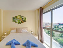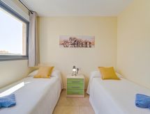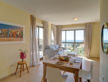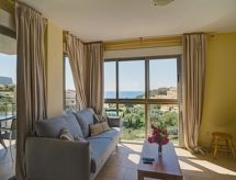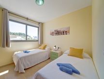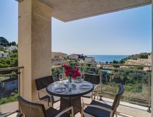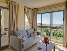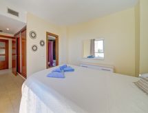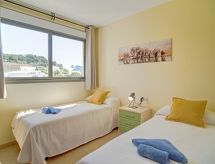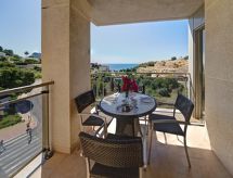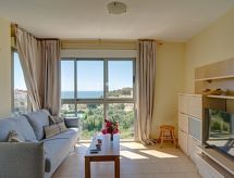 "Vistanova", 3 rom leilighet 50 m2 i 4th etasje. Lys, praktiskt og koseligt møbler: stue/spisestue med, 1 dobbel sovesoffa (160 cm, lengde 200 cm), digital TV, air-conditioning og varmluft oppvarming. Utgang til terrassen. 1 rom med 2 senger (90 cm lengde 190 cm), air-conditioning og varmluft oppvarming. 1 rom med, 1 dobbeltseng (160 cm, lengde 200 cm), bad/bidèt/WC, air-conditioning og varmluft oppvarming. Kjøkken (stekeovn, oppvaskmaskin, 4 keramiske kokeplater, brødrister, vannkoker, mikrobølgeovn, frys, elektrisk kaffemaskin) med, vannkoker (50 liter). Dusj/WC. Liten terrasse. Terrassemøbler. Utsikt av havet. Fasiliteter: vaskemaskin, strykejern, høy barnestol barneseng for barn opp til 2 år, hårføner. Internett (trådløs LAN [WLAN], gratis). Parkeringsplass (inngjerdet, 1 Bil). Vennligst merk: røykfritt hus. Kjæledyr / hund tillatt 1 kjæledyr / hund tillatt. R0000000001 Husdyr er tillatt. La hunden ta en sniff på de beste dagene av året. Med inngjerdet tomt. Overrasket med en fantastisk utsikt over havet. Det er en barneseng. Huset er også utstyrt med oppvaskmaskin.- Kjennetegn ved boligen