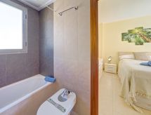 Canuta: Fin leilighetshus "Vistanova". I utkanten, 1.1 km fra sentrum av Calpe, i distriktet Canuta, i en roligt, solrikt posisjon, 450 m fra sjøen. Fellesbruk: tomt (inngjerdet), 1 badebasseng (Sesongåpent: 01.Apr. - 31.Okt.). Utendørs dusj. I hbrukt: heis. Butikk, supermarked, bakeri 450 m, café 500 m, bussholdeplass "Bus local" 300 m, sandstrand "Playa Arenal Bol" 1.2 km, strand ved klipper "Cala Manzanera" 450 m. Sporthavn 3.6 km, marina 3.6 km, surfeskole 3.6 km, seileskole 3.6 km. Attraksjoner i nærheten: Peñon de Ifach, Las Salinas. Stille og rolig område. Stillhet og god oppførsel.Interior