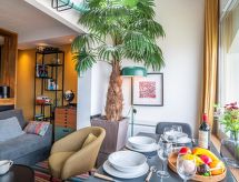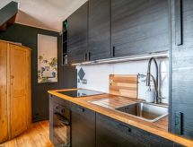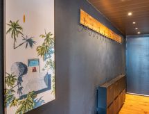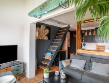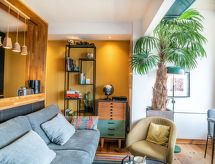 Bidart: Residens "Zirlinga". 100 m fra sjøen, 100 m fra stranden, vei å krysse, direkte tilgang til stranden. Fellesbruk: velholdt hage, 1 badebasseng (15 x 7 m, dybde 100- 180 cm dyp, Sesongåpent: 15.Mai. - 30.Sep.). Barnebasseng, tennis. Daglivarehandel 800 m, restaurant, bar 50 m, bakeri 1 km.minutters gange til sentrum 5, bussholdeplass 50 m, togstasjon "Guéthary" 4 km, sandstrand "Uhabia" 80 m. Golfbane(9 hull) 4 km, surfeskole 80 m, tennis 10 m. Attraksjoner i nærheten: Bidapark 200 m, Marché tous les samedis. Turstier La Rhune 15 km. Vennligst merk: Det er flere lignende leiligheter i samme hus. The residence is situated 250 m from the main road.Interior