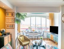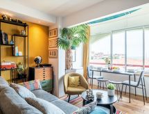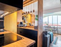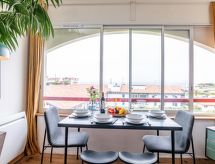 2 rom leilighet 37 m2 i 2nd etasje. Fullstendig renovert i 2019, vakkert og moderne møbler: stue/spisestue med panoramavindu med, 1 dobbel sovesoffa (140 cm, lengde 190 cm), TV (flatskjerms TV). 1 rom med, 1 dobbeltseng (140 cm, lengde 190 cm). Kjøkkenkrok (ovn, oppvaskmaskin, 4 keramiske kokeplater, brødrister, vannkoker, elektrisk kaffemaskin, kombinert mikrobølgeovn). Dusj/WC. El-oppvarming. Vakker utsikt av havet og svømmebassenget. Fasiliteter: vaskemaskin, hårføner. Internett (trådløs LAN [WLAN], gratis). Parkeringsplass plass nr 137. Vennligst merk: røykfri bolig. Røykvarsler, ingen heis. 6412500152791 Residence. Et barnebasseng er tilgjengelig.- Kjennetegn ved boligen