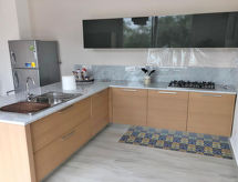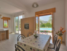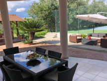 4-pokojowa willa 160 m2. Wygodne i gustowne umeblowanie: salon/jadalnia z 1 dwuosobową kanapą i TV (satelitarna) (TV z płaskim ekranem). 1 pokój 2-osobowy z prysznicem/bidetem/WC i TV (TV z płaskim ekranem), klimatyzacją. 2 pokoje z 2 łóżkami bliźniaczymi, każdy pokój z TV (TV z płaskim ekranem), klimatyzacją. Kuchnia (5 palników, piekarnik, zmywarka do naczyń, kuchenka mikrofalowa, zamrażarka). Prysznic/bidet/WC. Leżaki. Widok na basen, na ogród i na okolicę. Do dyspozycji: pralka, żelazko, krzesełko dla dziecka, łóżko dla dziecka do 2 lat, suszarka do włosów. Internet (bezprzewodowy LAN [WLAN], gratis). Miejsce parkingowe (2 samochody).- udogodnienia