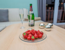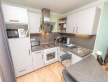 2-pokojowe mieszkanie 33 m2, na piętrze. Przytulne umeblowanie: salon/jadalnia z stołem i TV (satelitarna) (TV z płaskim ekranem), DVD. 1 pokój 2-osobowy. Kącik kuchenny (4 palniki, piekarnik, zmywarka do naczyń, toster, czajnik elektryczny, ekspres do kawy). Prysznic/WC. Ogrzewanie gazowe. Do dyspozycji: Internet (bezprzewodowy LAN [WLAN], gratis). Informacja dodatkowa: mieszkanie dla osób niepalących. Czujnik dymu.- udogodnienia