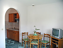 2-pokojowy dom bliźniaczy 30 m2. Ładne umeblowanie: salon/jadalnia 12 m2 z 1 dwuosobową kanapą, TV (satelitarna) i klimatyzacją. Wyjście na taras. 1 pokój z 2 łóżkami. Kącik kuchenny (2 palniki). Prysznic/bidet/WC. Taras 20 m2, od południa. Meble ogrodowe. Do dyspozycji: Internet (bezprzewodowy LAN [WLAN], gratis). 1 zwierzak/pies.- udogodnienia