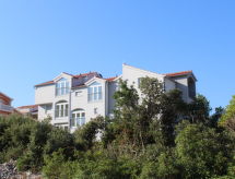 2-pokojowe mieszkanie 43 m2, na poddaszu, od północnego-zachodu. Mansardowy salon/jadalnia 20 m2, wysokość pomieszczenia 175 - 300 cm z 1 dwuosobową kanapą (150 cm o długości 200 cm), TV (satelitarna) (TV z płaskim ekranem), klimatyzacją. Wyjście na taras. Mansardow 1 pokój, wysokość pomieszczenia 175 - 300 cm z 1 łóżkiem podwójnym (2 x 90 cm, o długości 190 cm), klimatyzacją. Wyjście na taras. Otwarta kuchnia (zmywarka do naczyń, 4 palniki – kuchenka z płytą ceramiczną, toster, czajnik elektryczny, kuchenka mikrofalowa, ekspres do kawy). Prysznic/WC. Taras 5 m2 (zadaszony). Meble ogrodowe. Widok na morze. Do dyspozycji: pralka, suszarka. Internet (bezprzewodowy LAN [WLAN], gratis). Max. 1 mały zwierzak/pies.- udogodnienia