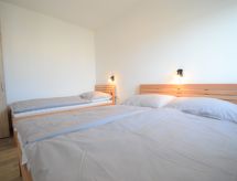 2-pokojowe mieszkanie 32 m2 na 1. piętrze, od północnego-wschodu. Salon/jadalnia z TV (satelitarna) (TV z płaskim ekranem), klimatyzacją. 1 pokój z 1 łóżkiem (90 cm, o długości 200 cm), 1 łóżkiem podwójnym (2 x 80 cm, o długości 200 cm), klimatyzacją. Otwarta kuchnia (zmywarka do naczyń, 2 palniki – kuchenka z płytą ceramiczną, toster, czajnik elektryczny, kuchenka mikrofalowa, zamrażarka, ekspres do kawy). Prysznic/WC. Widok na morze. Do dyspozycji: pralka. Internet (bezprzewodowy LAN [WLAN], gratis). Max. 1 mały zwierzak/pies.- udogodnienia