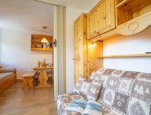 "Arcelle 508", 2-pokojowe mieszkanie 26 m2 na 5. piętrze, od południowego-zachodu. Wygodne i ładne umeblowanie: salon/jadalnia z piecykiem. 1 mały pokój 6 m2 z rozsuwanymi drzwiami z 1 dwuosobową kanapą (140 cm o długości 190 cm), TV (TV z płaskim ekranem), piecykiem. Kącik sypialny z 1 x 2 łóżkami piętrowymi. Kącik kuchenny (2 palniki, piekarnik, zmywarka do naczyń, ekspres do kawy). Łazienka, oddzielne WC. Ładny widok na góry i na stoki narciarskie. Do dyspozycji: Internet (bezprzewodowy LAN [WLAN], extra). Informacja dodatkowa: Max. 1 zwierzak/pies. Czujnik dymu.- Charakterystyka zakwaterowania