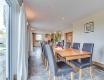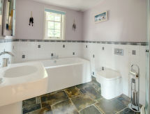 8-pokojowy dom. Praktyczne i wygodne umeblowanie: salon z TV, sprzętem stereo i DVD. Kuchnia (4 palniki, piekarnik, zmywarka do naczyń, zamrażarka) z stołem. Prysznic/WC. Ogrzewanie olejowe. Na piętrze: 1 pokój z 1 łóżkiem podwójnym i łazienką/prysznicem/WC. 1 pokój dziecięcy. 1 pokój z 1 łóżkiem podwójnym. 1 pokój z 1 x 2 łóżkami piętrowymi. 1 pokój z 1 łóżkiem. Prysznic/WC. 2 piętro: salon z TV i DVD. 1 pokój z 1 łóżkiem podwójnym. 1 pokój z 2 łóżkami. Łazienka/prysznic/WC. Ogród. Meble ogrodowe, grill. Ładny widok na okolicę. Do dyspozycji: pralka, suszarka, krzesełko dla dziecka, łóżko dla dziecka. Internet (bezprzewodowy LAN [WLAN], gratis). Informacja dodatkowa: dom dla niepalących. TV tylko EN.- Charakterystyka zakwaterowania