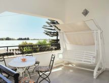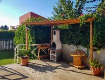 "Caldarella", 3-pokojowe mieszkanie 90 m2 na 1. piętrze, od południa. Proste i praktyczne umeblowanie: salon/jadalnia z TV. Wyjście na balkon. 1 pokój 2-osobowy z klimatyzacją. Wyjście na balkon. 1 pokój z 2 łóżkami. Wyjście na balkon. (4 palniki, mini piekarnik, toster, czajnik elektryczny, kuchenka mikrofalowa, zamrażarka) z dużym stołem. Wyjście na werandę. Bidet, łazienka lub prysznic/WC. 3 małe balkony 1 m2, balkon 4 m2, taras 20 m2 (zadaszony). Meble ogrodowe. Do dyspozycji: żelazko, łóżko dla dziecka do 2 lat, suszarka do włosów. Internet (bezprzewodowy LAN [WLAN], gratis). Miejsce parkingowe (1 samochód).- Charakterystyka zakwaterowania