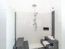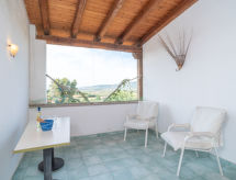 "Camilla", 4-pokojowe mieszkanie 100 m2 na 2 poziomach. Proste i przytulne umeblowanie: jadalnia z TV. Wyjście na werandę. 1 pokój z 2 łóżkami. Kącik kuchenny (4 palniki, piekarnik, zmywarka do naczyń, zamrażarka). Prysznic/bidet/WC. Na piętrze: (kręcone schody) 1 duży pokój 2-osobowy z klimatyzacją. Wyjście na taras. 1 pokój z 1 dwuosobową kanapą. Wyjście na taras. Prysznic/bidet/WC, podwójna umywalka. Mały taras (zadaszony), ogród. Meble balkonowe, grill (przenośny). Informacja dodatkowa: 1 zwierzak/pies. Niezależne wejście. IUN:P6712- udogodnienia