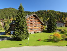 "Diamant 1", 3-pokojowe mieszkanie 70 m2, na parterze, od południa. Odnowione w roku 2016, wygodne i ładne umeblowanie: salon/jadalnia z stołem i TV (TV z płaskim ekranem), DVD. Wyjście do ogrodu, od południa. 1 pokój dziecięcy z 2 x 2 łóżkami piętrowymi. 1 pokój z 2 łóżkami (90 cm, o długości 200 cm). Otwarta kuchnia (piekarnik, zmywarka do naczyń, 4 palniki – kuchenka z płytą ceramiczną, ekspres do kawy, naboje do ekspresu do kawy (Nespresso), grill typu Raclette, zestaw do fondue (serowy)). Łazienka/WC, oddzielne WC, podwójna umywalka. Taras 10 m2. Ładny widok panoramiczny na góry. Do dyspozycji: Internet (bezprzewodowy LAN [WLAN], gratis). Miejsce w garażu numer 12. 2 zwierzaki/psy.- Charakterystyka zakwaterowania