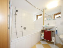 3-pokojowe mieszkanie 50 m2 na 2 poziomach, na piętrze. Nowoczesne i przytulne umeblowanie: salon/sypialnia z 1 dwuosobową kanapą, kącikiem jadalnym i TV (satelitarna). Pokój przechodni z 1 dwuosobową kanapą. Otwarta kuchnia (piekarnik, zmywarka do naczyń, 4 palniki – kuchenka z płytą ceramiczną, kuchenka mikrofalowa). Na piętrze: 1 pokój 2-osobowy. Łazienka/WC. Balkon. Do dyspozycji: telefon, sejf, suszarka do włosów. Internet (bezprzewodowy LAN [WLAN], gratis). Informacja dodatkowa: 1 zwierzak/pies. Czujnik dymu.- udogodnienia
