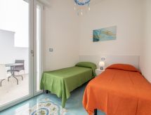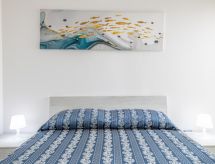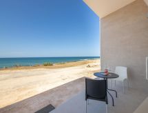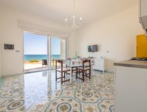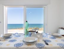 "Frontemare Harmony", 3-pokojowe mieszkanie 65 m2, na parterze. Praktyczne i przytulne umeblowanie: 1 pokój 2-osobowy. Wyjście na balkon. 1 pokój z 2 łóżkami. Wyjście na balkon. Salon/jadalnia z oknem panoramicznym z 1 kanapą i TV (TV z płaskim ekranem). Wyjście na balkon. Kącik kuchenny (4 palniki, piekarnik, zamrażarka). Prysznic/bidet/WC. Ogrzewanie, klimatyzacja. Ogrzewanie tylko w terminie od 01.11. do 31.03. Mały balkon 10 m2. Meble balkonowe. Bardzo ładny widok na morze. Do dyspozycji: pralka, suszarka do włosów. Informacja dodatkowa: brak parkingu. LE07508591000022300- udogodnienia