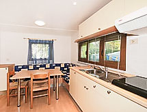 3-pokojowy bungalow 35 m2. Wygodne umeblowanie: mały salon/jadalnia z kącikiem kuchennym i TV. 1 mały pokój 2-osobowy. 1 pokój z 3 łóżkami. Prysznic/bidet/WC. Ogrzewanie elektryczne, klimatyzacja (extra). Patio ogrodowe. Meble ogrodowe. Do dyspozycji: moskitiery, suszarka do włosów. Miejsce parkingowe numer 1. Informacja dodatkowa: TV tylko IT. W przypadku obiektu do wynajęcia chodzi o dom typowy / apartament typowy.- udogodnienia