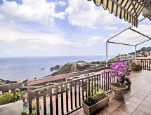 2-pokojowe mieszkanie 50 m2 na 1. piętrze. Proste umeblowanie: salon/jadalnia z 1 dwuosobową kanapą i TV (TV z płaskim ekranem), klimatyzacją. Wyjście na taras. 1 pokój 2-osobowy z klimatyzacją. Wyjście na taras. Kącik kuchenny (piekarnik, 4 płyta indukcyjna, zamrażarka). Prysznic/bidet/WC. Klimatyzacja, ogrzewanie ciepłym powietrzem, bojler (80 litrów). Duży taras 20 m2. Meble ogrodowe. Ładny widok panoramiczny na morze. Do dyspozycji: suszarka do włosów. Informacja dodatkowa: brak parkingu. Brak windy. Do mieszkania prowadzi 20 schodków.- Charakterystyka zakwaterowania