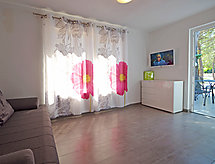 2-pokojowy dom 45 m2, od południowego-zachodu. Salon/jadalnia 20 m2 z 1 dwuosobową kanapą (140 cm o długości 200 cm), TV (satelitarna) (TV z płaskim ekranem), klimatyzacją. Wyjście na taras. 1 pokój z 1 łóżkiem dwuosobowym (140 cm, o długości 200 cm). Otwarta kuchnia (4 palniki, piekarnik, zmywarka do naczyń, zamrażarka). Prysznic/bidet/WC. Taras 12 m2. Meble ogrodowe. Do dyspozycji: Internet (bezprzewodowy LAN [WLAN], gratis). 1 zwierzak/pies.- udogodnienia