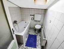 3-pokojowe mieszkanie 70 m2 na 3. piętrze. Mansardowe, proste umeblowanie: hol wejściowy. Wyjście na balkon. 1 pokój z 1 łóżkiem podwójnym. 1 pokój z 1 łóżkiem podwójnym. 1 pokój z 2 łóżkami. Kuchnia (4 palniki, piekarnik, kuchenka mikrofalowa) z stołem, TV i piecykiem. Łazienka/WC. Ogrzewanie. Drewniane podłogi. Duży balkon. Widok panoramiczny na jezioro, na góry i na dolinę. Do dyspozycji: Internet (bezprzewodowy LAN [WLAN], gratis). Informacja dodatkowa: mieszkanie dla osób niepalących. 2 zwierzaki/psy. Brak windy.- udogodnienia