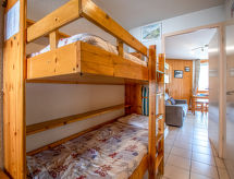 2-pokojowe mieszkanie 30 m2 na 3. piętrze. Salon/jadalnia z TV (satelitarna). 1 pokój z 1 łóżkiem dwuosobowym (140 cm, o długości 190 cm). Wnęka sypialna z 1 x 2 łóżkami piętrowymi (90 cm, o długości 190 cm). Kącik kuchenny (4 palniki, zmywarka do naczyń, kuchenka mikrofalowa). Prysznic, oddzielne WC. Ogrzewanie elektryczne. Balkon, od południa i od wschodu. Ładny widok na góry i na miejscowość. Do dyspozycji: pralka.- Charakterystyka zakwaterowania