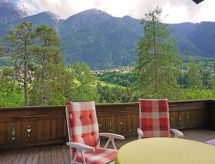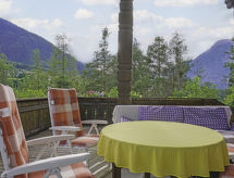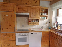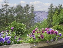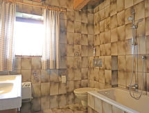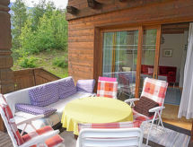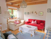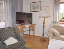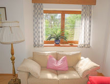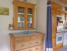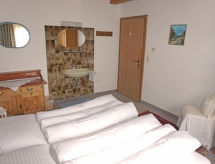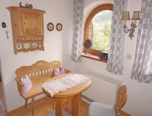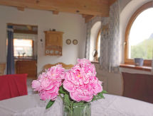 4-pokojowe mieszkanie 100 m2 na 1. piętrze. Przestronne i jasne, ładne i rustykalne umeblowanie: hol wejściowy. 1 pokój 2-osobowy z umywalką. 1 pokój 2-osobowy. Wyjście na balkon, od wschodu. Otwarty duży salon/jadalnia z 1 łóżkiem wysuwanym (2 os.), piecem kaflowym. Wyjście na taras. Kuchnia (piekarnik, 4 palniki – kuchenka z płytą ceramiczną, czajnik elektryczny, kuchenka mikrofalowa, ekspres do kawy). Łazienka/WC, oddzielne WC, podwójna umywalka. Duży taras, od południa. Meble ogrodowe. Ładny widok na góry i na okolicę. Do dyspozycji: Internet (bezprzewodowy LAN [WLAN], gratis). Informacja dodatkowa: mieszkanie dla osób niepalących. 1 zwierzak/pies.- udogodnienia