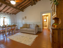 Farma. 8 mieszkań w domu wakacyjnym. Obiekt wypoczynkowy składający się z budynku głównego/przyległego 9.8 km od centrum Peccioli, 24 km od centrum Volterra, 35 km od centrum San Gimignano, słoneczne położenie na wzgórzu, 45 km od morza. Do wspólnego użytku: ogród (ogrodzony), basen (20 x 8 m, głębokość 140 - 300 cm, dostępność sezonowa: 01.Maj. - 30.Paź.). Prysznic na zewnątrz, tenis stołowy, boccia, meble ogrodowe, grill, plac zabaw, Pielęgnacja basenu przez właściciela/ogrodnika. W domu: pokój klubowy z TV, bezprzewodowy LAN [WLAN], ogrzewanie tylko w terminie od 15.04. do 01.11.. Śniadanie na życzenie (extra płatne). Dojazd do domu (800 m droga polna). Miejsca parkingowe na terenie. Sklep spożywczy 3.8 km, supermarket 3.8 km, restauracja 500 m, bar 1 km, plaża piaszczysta "Marina di Cecina, Vada, Tirrenia" 45 km, plaża kamienista "Castiglioncello" 60 km, basen termalny "Casciana Terme" 29 km. Pole golfowe (18 dołków) 13 km. Atrakcje w pobliżu domu: Lajatico 21 km, Chianni 25 km, San Miniato 45 km, Pisa 55 km, Lucca 57 km, Bolgheri 62 km. Odpowiedni na eventy.Interior