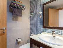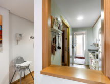 "Casa Nova", 3-pokojowe mieszkanie 75 m2 na 2. piętrze. Praktyczne i wygodne umeblowanie: salon/jadalnia z stołem, TV (satelitarna), TV cyfrowa, TV z płaskim ekranem, odtwarzaczem CD, DVD, kolekcją DVD, klimatyzacją i ogrzewaniem ciepłym powietrzem. Wyjście na taras. 1 pokój z 1 łóżkiem dwuosobowym (160 cm, o długości 200 cm), łazienką/bidetem/WC, klimatyzacją i ogrzewaniem ciepłym powietrzem. 1 pokój z 2 łóżkami (90 cm, o długości 200 cm), łazienką/bidetem/WC, klimatyzacją i ogrzewaniem ciepłym powietrzem. Kuchnia (piekarnik, zmywarka do naczyń, 4 palniki – kuchenka z płytą ceramiczną, toster, czajnik elektryczny, kuchenka mikrofalowa, zamrażarka, ekspres do kawy). Ogrzewanie gazowe. 2 duże tarasy. Meble ogrodowe, grill elektryczny, leżaki (1). Widok na morze i na miejscowość. Do dyspozycji: pralka, żelazko, krzesełko dla dziecka, łóżko dla dziecka do 2 lat, suszarka do włosów. Internet (bezprzewodowy LAN [WLAN], gratis). Odpowiedni dla rodzin. VFT/AL/06999- Charakterystyka zakwaterowania