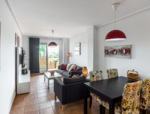 Komfortowa rezydencja "Lomas del Mar V". Spokojne, słoneczne położenie, 2 km od morza, 2 km od plaży. Do wspólnego użytku: zadbany ogród - krzewy, 2 baseny, kryty basen (12 x 6 m, głębokość 175 cm, dostępność sezonowa: 01.Sty. - 31.Gru.). Prysznic/wc przy basenie, brodzik dla dzieci, kort tenisowy, plac zabaw, parking publiczny przy ulicy. Supermarket 2 km, restauracja 2 km, bar 2 km, kawiarnia 2 km, plaża piaszczysta "Vera Playa" 2 km. Właściciel nie akceptuje grup młodzieżowych.Interior