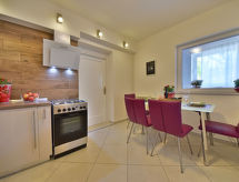 Volosko: Dom bliźniaczy "M". 2 km od centrum Opatija, słoneczne położenie na wzniesieniu, 500 m od morza, 500 m od plaży, przy ślepej ulicy, otoczony zielenią. Do indywidualnego użytku: działka 950 m2 (ogrodzona), trawnik 50 m2, krzewy. Wanna z hydromasażem, altana (9 m2), taras (8 m2), meble ogrodowe, grill. W domu: dostęp do internetu, pralka. Miejsca parkingowe obok domu na terenie. Sklep wielobranżowy 150 m, restauracja 250 m, plaża żwirowa, plaża betonowa 500 m. Wanna z hydromasażem (extra). Monitoring podjazdu i parkingu.Interior