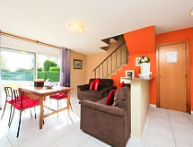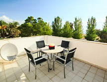 5-pokojowy dom szeregowy 120 m2 na 3 poziomach. Praktyczne i przytulne umeblowanie: salon/jadalnia 18 m2 z stołem i TV. Wyjście do ogrodu, na basen. Otwarta kuchnia (4 palniki, piekarnik, zmywarka do naczyń, kuchenka mikrofalowa, zamrażarka, ekspres do kawy) z barem. Oddzielne WC. Na piętrze: 1 pokój z 1 łóżkiem (90 cm). Wyjście na balkon. 1 pokój z 1 łóżkiem dwuosobowym (135 cm), TV. Wyjście na balkon. 1 pokój z 1 łóżkiem dwuosobowym (135 cm). Łazienka/WC. Klimatyzacja, ogrzewanie ciepłym powietrzem (extra). 2 piętro: (kręcone schody) 1 duży pokój z 3 łóżkami (90 cm), TV i DVD. Wyjście na taras. Klimatyzacja, ogrzewanie ciepłym powietrzem (extra). Balkon 8 m2, taras 15 m2, patio ogrodowe 10 m2. Meble ogrodowe, grill. Bardzo ładny widok na morze i na okolicę. Do dyspozycji: pralka, sejf, krzesełko dla dziecka. Internet (bezprzewodowy LAN [WLAN], extra). Miejsce parkingowe obok domu. Odpowiedni dla rodzin. Sztuczny trawnik przy basenie. TV jest Smart TV. HUTTE000908- udogodnienia