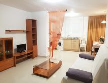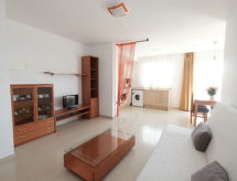 Dom apartamentowy "Olim". W górnej części miejscowości Alcanar Playa, poza miejscowością, 3 km od centrum Sant Carlos de la Rapita, 500 m od morza, 820 m od plaży. Do wspólnego użytku: ogród, basen (12 x 8 m, głębokość 80 - 200 cm, dostępność sezonowa: 01.Kwi. - 30.Wrz. basen czynny w godz. 10:00-21:00). Prysznic na zewnątrz, Pielęgnacja basenu przez właściciela/ogrodnika, parking publiczny przy ulicy. Sklep wielobranżowy 1 km, sklep spożywczy 700 m, supermarket 1 km, centrum handlowe 2 km, restauracja, bar 200 m, deptak 5 m, przystanek autobusowy "Alcanar Playa" 500 m, plaża piaszczysta "Sant Carlos de la Rapita" 2 km, plaża kamienista "Alcanar Playa" 700 m. Przystań 1 km, szkoła żeglarska 1 km, centrum sportowe 1 km. Atrakcje w pobliżu domu: Parque Natural del Delta de l'Ebre 20 km, Peñiscola 40 km, Vinaroz 20 km, Port Aventura Salou 80 km. Region szlaków wędrownych: La Foradada Sant Carlos de la Rapita 6 km. Informacja dodatkowa: samochód niezbędny. Grupy młodzieży tylko na zapytanie.Interior