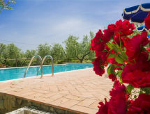 "Oliveto", 3-pokojowe mieszkanie 70 m2 na 2 poziomach, na parterze. Praktyczne i gustowne umeblowanie: 1 pokój 2-osobowy. Kuchnia (4 palniki, mini piekarnik) z TV (satelitarna). Prysznic/bidet/WC. Na piętrze: salon z 1 dwuosobową kanapą. 1 pokój 2-osobowy z prysznicem/bidetem/WC. Ogrzewanie (extra). Do dyspozycji: moskitiery. Internet (bezprzewodowy LAN [WLAN], gratis).- udogodnienia