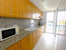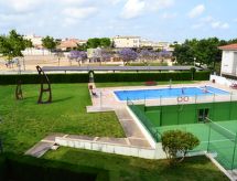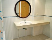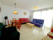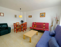 Dom apartamentowy "Pasarela". Na skraju miejscowości, 1 km od centrum Sant Carles de la Rapita, 150 m od morza, 150 m od plaży. Do wspólnego użytku: ogród, basen (12 x 6 m, głębokość 80 - 190 cm, dostępność sezonowa: 01.Kwi. - 30.Paź. basen czynny w godz. 10:00-21:00). Prysznic na zewnątrz, kort tenisowy, tenis stołowy, Pielęgnacja basenu przez właściciela/ogrodnika. W domu: winda. Miejsca parkingowe numer 17. Sklep wielobranżowy 1 km, sklep spożywczy 1 km, supermarket 1 km, centrum handlowe 1 km, restauracja, bar 400 m, piekarnia 1 km, kawiarnia 400 m, deptak 10 m, wypożyczalnia rowerów 2 km, do centrum 15 min pieszo, przystanek autobusowy "Hife Les Delicies" 500 m, stacja kolejowa "l'Aldea" 15 km, plaża piaszczysta "Playa del Suiss" 250 m. Przystań 1 km, szkoła żeglarska 1 km, centrum sportowe 1 km. Atrakcje w pobliżu domu: Parque Natural del Delta de l'Ebre 20 km, Peñiscola 40 km, Vinaroz 20 km, Port Aventura Salou 80 km. Region szlaków wędrownych: La Foradada Sant Carlos de la Rapita 6 km. Informacja dodatkowa: samochód niezbędny. Grupy młodzieży tylko na zapytanie.Interior