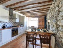 3-pokojowy dom typu „cottage” na 2 poziomach. Wygodne i przytulne umeblowanie: salon z TV, DVD i piecem opalanym drewnem. 2 pokoje, każdy pokój z 1 łóżkiem podwójnym. Kuchnia (4 palniki, piekarnik, zmywarka do naczyń, zamrażarka) z dużym stołem. Łazienka/prysznic/WC. Ogrzewanie. Do dyspozycji: pralka, suszarka, krzesełko dla dziecka, łóżko dla dziecka do 2 lat. Internet (bezprzewodowy LAN [WLAN], gratis). Informacja dodatkowa: dom dla niepalących.- Charakterystyka zakwaterowania