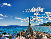 2-pokojowe mieszkanie 40 m2 na 2. piętrze, od południa. Salon/jadalnia z TV (satelitarna) (TV z płaskim ekranem), klimatyzacją. Wyjście na balkon. 1 pokój z 1 łóżkiem podwójnym (2 x 80 cm, o długości 200 cm). Otwarta kuchnia (2 palniki, piekarnik, zamrażarka). Prysznic/WC. Balkon 8 m2. Meble balkonowe. Piękny widok na morze i na miejscowość. Do dyspozycji: Internet (bezprzewodowy LAN [WLAN], gratis). 1 mały zwierzak/pies.- udogodnienia