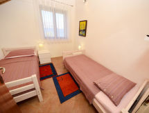 6-pokojowy dom 140 m2 na 2 poziomach, od południa. Salon/jadalnia z 1 dwuosobową kanapą (140 cm o długości 200 cm), TV (satelitarna) (TV z płaskim ekranem), klimatyzacją. Wyjście na taras. 1 pokój z 1 łóżkiem podwójnym (2 x 90 cm, o długości 200 cm), TV (satelitarna) (TV z płaskim ekranem), klimatyzacją. 1 pokój z 2 łóżkami (90 cm, o długości 200 cm), TV (satelitarna) (TV z płaskim ekranem), klimatyzacją. Otwarta kuchnia (piekarnik, zmywarka do naczyń, 4 palniki – kuchenka z płytą ceramiczną, kuchenka mikrofalowa, zamrażarka, ekspres do kawy). 2x prysznic/WC. Na piętrze: (zewnętrzne schody) salon/jadalnia z TV (satelitarna) (TV z płaskim ekranem), klimatyzacją. Wyjście na taras. 1 pokój z 2 łóżkami (90 cm, o długości 200 cm), TV (satelitarna) (TV z płaskim ekranem), klimatyzacją. 1 pokój z 1 łóżkiem podwójnym (2 x 90 cm, o długości 200 cm), prysznicem/WC i TV (satelitarna) (TV z płaskim ekranem), klimatyzacją. Otwarta kuchnia (2 palniki – kuchenka z płytą ceramiczną, zamrażarka). Prysznic/WC. Taras 25 m2 (częściowo zadaszony), taras 8 m2 (zadaszony). Meble ogrodowe, leżaki. Piękny widok na morze. Do dyspozycji: sejf, łóżko dla dziecka, suszarka do włosów. Internet (bezprzewodowy LAN [WLAN], gratis). 1 zwierzak/pies.- udogodnienia