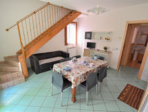 4-pokojowe mieszkanie 70 m2 na 2 poziomach na 1. piętrze. Częściowo mansardowe, praktyczne umeblowanie: hol wejściowy z 1 miejscem do spania i TV. Jadalnia. 1 pokój z 1 łóżkiem podwójnym. Kuchnia (4 palniki, mini piekarnik, zamrażarka). Prysznic/bidet/WC. Na piętrze: 1 pokój z 2 łóżkami. 1 pokój z 1 łóżkiem podwójnym. Prysznic/bidet/WC. Klimatyzacja. Miejsce parkingowe. Informacja dodatkowa: 1 zwierzak/pies. Niezależne wejście.