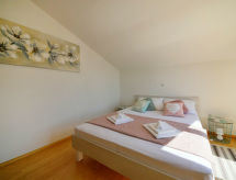 2-pokojowe mieszkanie 51 m2 na 2. piętrze, od południa. Całkowicie odnowione w roku 2018: salon/jadalnia 20 m2 z 1 dwuosobową kanapą (160 cm o długości 200 cm), TV (satelitarna) (TV z płaskim ekranem), klimatyzacją. Wyjście na balkon. 1 mansardowy pokój, wysokość pomieszczenia 185 - 350 cm z 1 łóżkiem podwójnym (2 x 80 cm, o długości 200 cm). Wyjście na balkon. Otwarta kuchnia (zmywarka do naczyń, 3 palniki – kuchenka z płytą ceramiczną, kuchenka mikrofalowa, zamrażarka, ekspres do kawy). Prysznic/WC. Balkon 15 m2, balkon 3 m2. Meble balkonowe. Piękny widok na morze. Do dyspozycji: pralka. Internet (bezprzewodowy LAN [WLAN], gratis).- udogodnienia