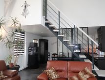 "Valhalla, chez Emile", 2-pokojowy dom bliźniaczy 45 m2 na 2 poziomach. Wygodne i ładne umeblowanie: otwarty duży salon z oknem panoramicznym z kominkiem i TV (satelitarna). Wyjście na taras. Otwarta kuchnia (zmywarka do naczyń, 3 płyta indukcyjna, toster, czajnik elektryczny, kuchenka mikrofalowa, zamrażarka, ekspres do kawy) z dużym stołem. Prysznic/WC. Ogrzewanie elektryczne, ogrzewanie podłogowe. Na piętrze: 1 mansardowy, otwarty pokój z 1 łóżkiem podwójnym (90 cm, o długości 200 cm), prysznicem, podwójną umywalką i TV (satelitarna). Taras 14 m2. Meble ogrodowe, grill (przenośny), leżaki (2). Widok na ogród. Do dyspozycji: pralka, żelazko, krzesełko dla dziecka, łóżko dla dziecka do 2 lat, suszarka do włosów. Internet (bezprzewodowy LAN [WLAN], gratis). Informacja dodatkowa: mieszkanie dla osób niepalących. Czujnik dymu.- udogodnienia