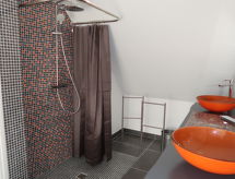 Bardzo ładny dom z 2 mieszkaniami "Valhalla-Jules ou Emile", otoczony drzewami, łąkami i polami. 2 mieszkania w domu wakacyjnym. W dzielnicy Glolais 1 km od centrum Planguenoual, 7 km od centrum Pléneuf-Val-André, 20 km od centrum Saint-Brieuc, spokojne położenie, 3 km od morza, otoczony zielenią. Do wspólnego użytku: działka 1'000 m2 (ogrodzona) - trawnik i krzewy, przepiękny ogród do odpoczynku, miejsca parkingowe (dla 2 samochodów) obok domu na terenie. Sklep spożywczy 1 km, supermarket 3 km, restauracja 1 km, plaża piaszczysta "Val-André" 7 km. Przystań 5 km, pole golfowe (9 dołków) 5 km, szkoła żeglarska 9 km, tenis 6 km. Atrakcje w pobliżu domu: Port de Dahouet 4.9 km, Pleneuf-Val-André 7 km, Erquy 15 km, Cap Fréhel 25 km, St. Quay- Portrieux 39 km.Interior