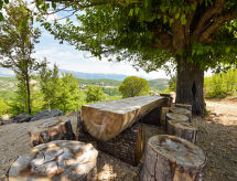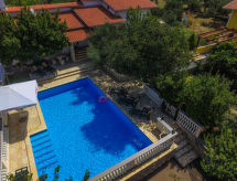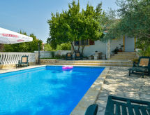 3-pokojowy dom 120 m2, od południowego-zachodu. Salon/jadalnia 60 m2 z TV (satelitarna) (TV z płaskim ekranem), klimatyzacją. 1 pokój z 1 łóżkiem (90 cm, o długości 200 cm), 1 łóżkiem dwuosobowym (160 cm, o długości 200 cm), TV (satelitarna) (TV z płaskim ekranem). 1 pokój z 1 łóżkiem (90 cm, o długości 200 cm), 1 łóżkiem dwuosobowym (160 cm, o długości 200 cm), prysznicem/WC i TV (satelitarna) (TV z płaskim ekranem). Otwarta kuchnia (4 palniki, piekarnik, zmywarka do naczyń, zamrażarka, ekspres do kawy). Prysznic/WC, oddzielne WC. Taras 20 m2 (częściowo zadaszony). Meble ogrodowe, leżaki. Widok na basen. Do dyspozycji: Internet (bezprzewodowy LAN [WLAN], gratis).- udogodnienia